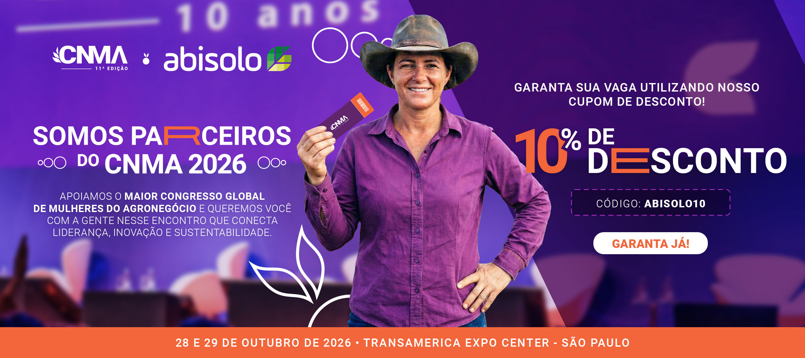 Como associado ABISOLO você garante 10% de desconto usando o código ABISOLO10.