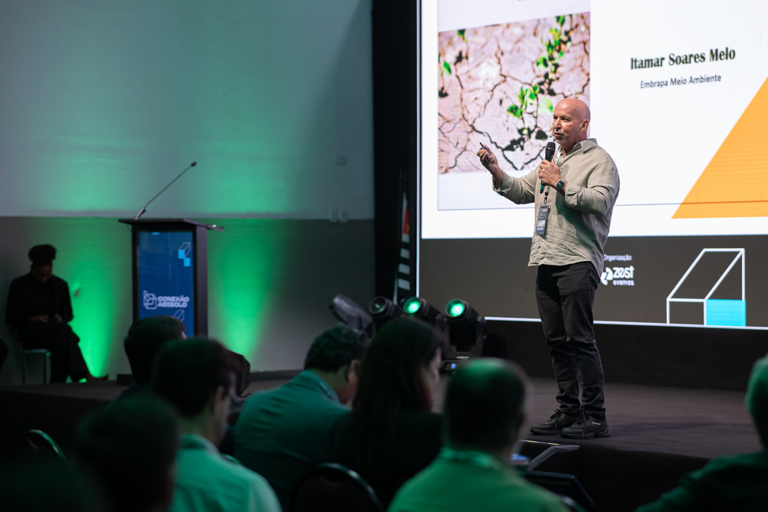 Dando continuidade à programação de palestras, o pesquisador da Embrapa, Itamar Soares de Melo, abriu o terceiro painel “Bioinsumos e seus efeitos fisiológicos” com a palestra “Microrganismos promotores do crescimento de plantas e mitigação de estresses abióticos”. O palestrante abordou o papel multifuncional das bactérias nas plantas, com destaque para sua contribuição na proteção contra a seca, problema que afeta cerca de 45% dos solos agricultáveis brasileiros.